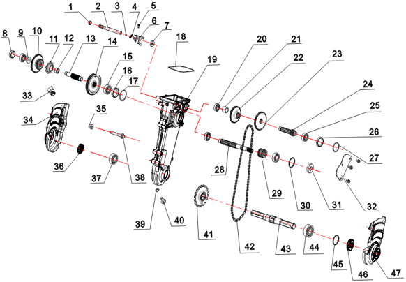 CambioMeccanico ad ingranaggio costante con catena e doppia cinghia di trazione