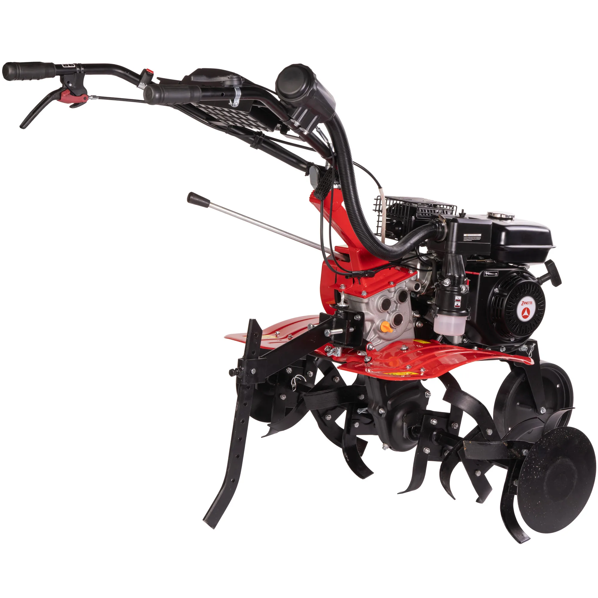 La ZBT 70.21 SB è una motozappa versatile, ideale per spazi di medie dimensioni, con motore Zanetti da 208 cc. Dotata di stegola regolabile grazie al sistema ESL (Easy Shift Lever), consente di fissare le stegole in qualsiasi posizione d’uso tramite una leva manuale al manubrio, garantendo massima semplicità e praticità durante l’uso. È progettata con una ruota anteriore di trasferimento e una coppia di ruote tractor per migliorare la stabilità. L trasmissione meccanica ad ingranaggi con catena e doppia cinghia di trazione offre due marce in avanti e una retromarcia, rendendo la ZBT 70.21 SB adatta per lavori intensivi e su terreni variabili.