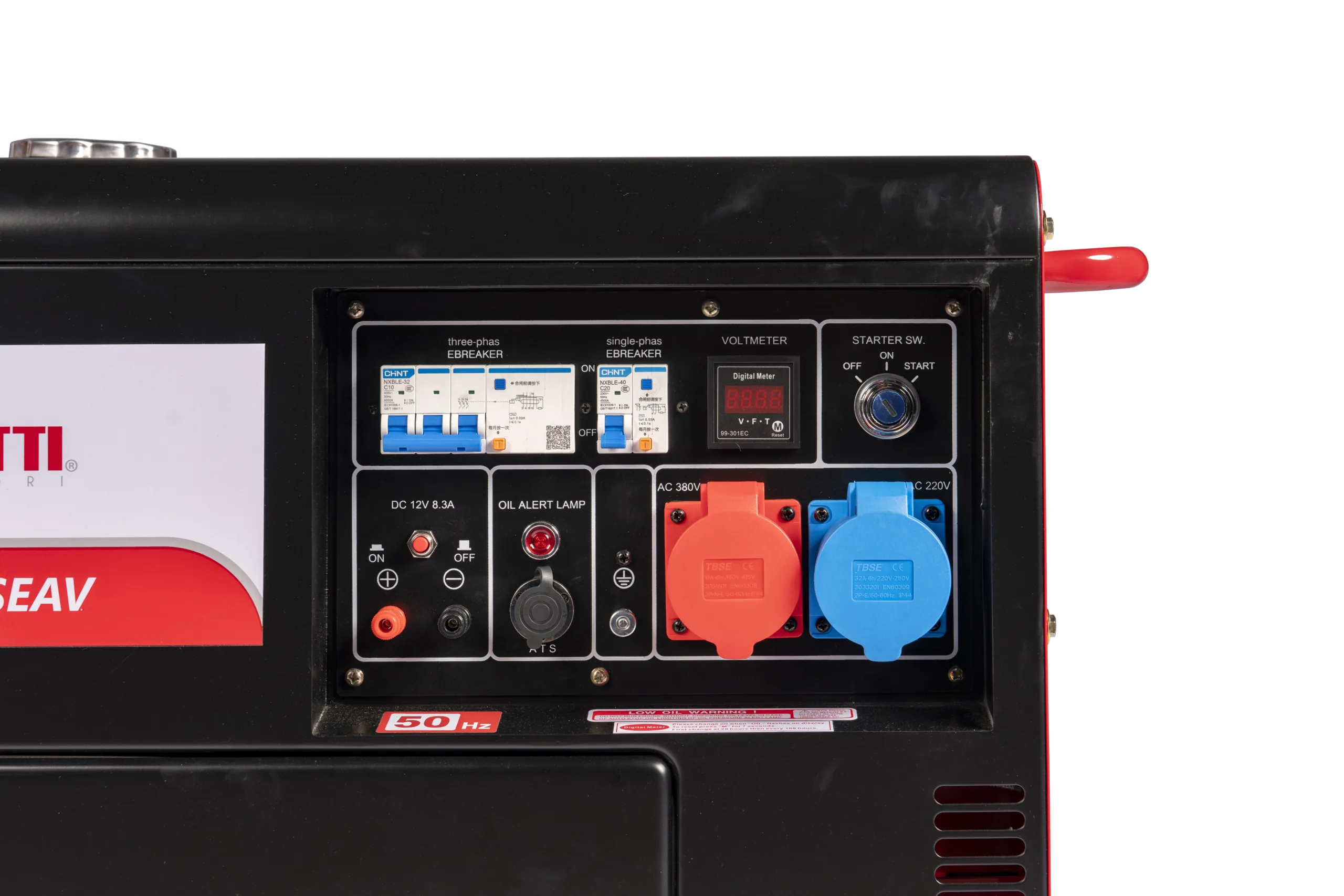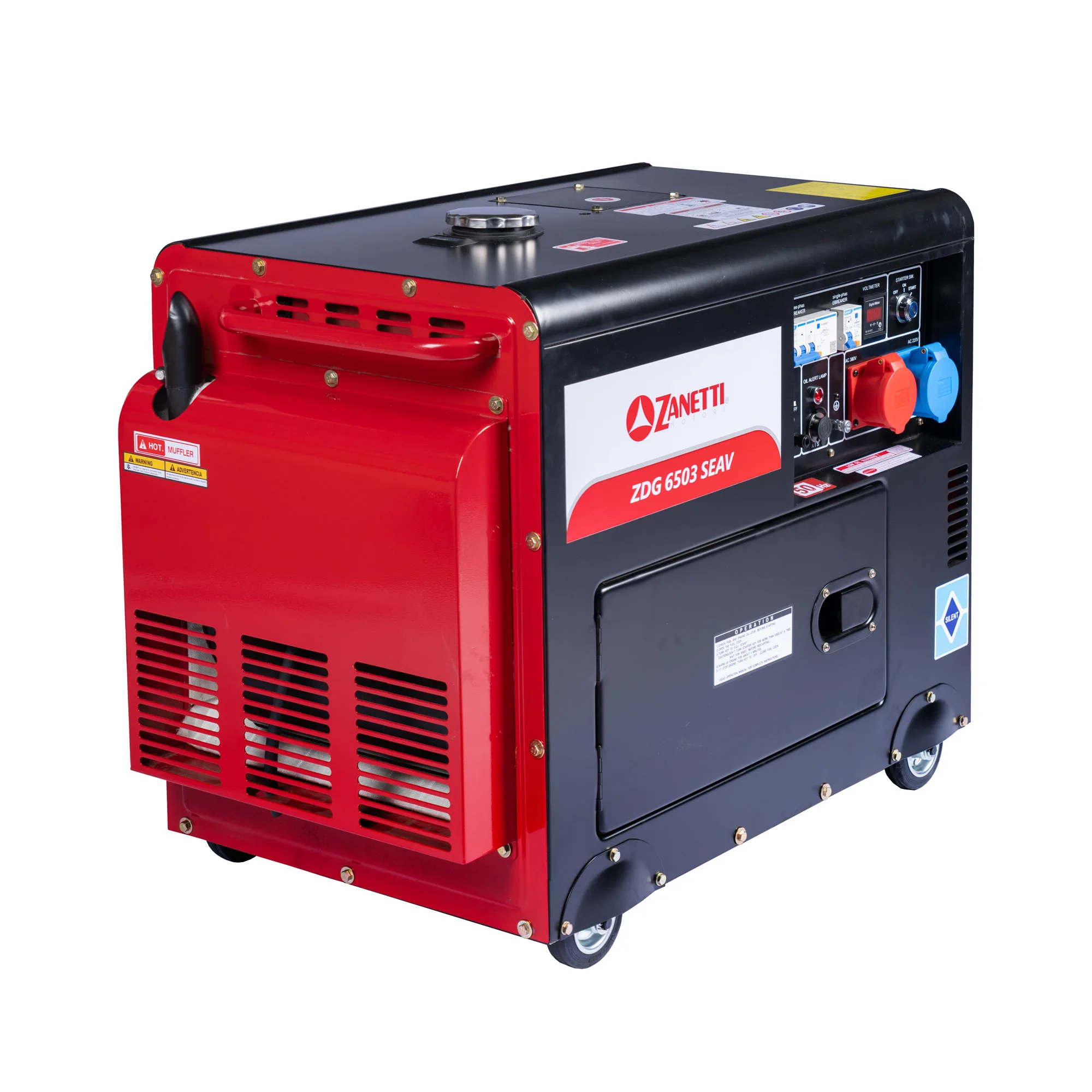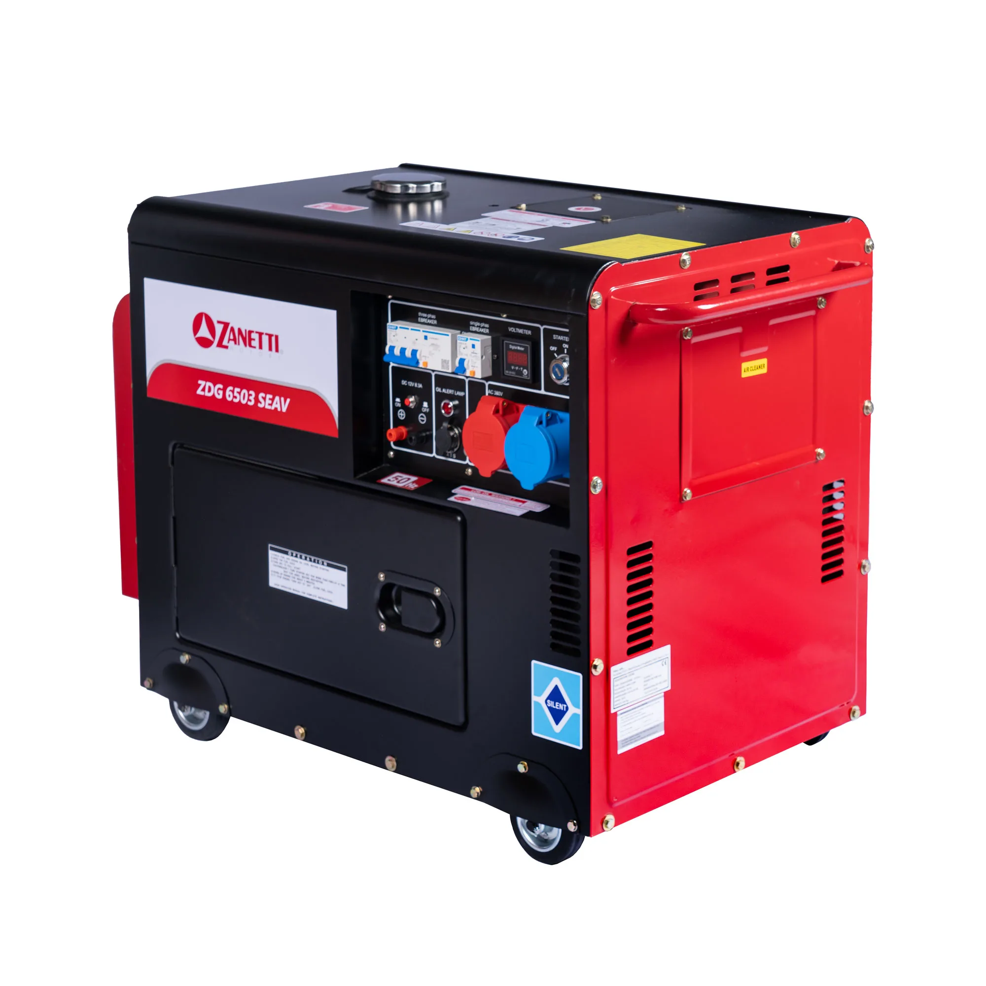 La serie di generatori Full power diesel, grazie ad una rivoluzionaria tecnologia ha potenza in uscita quasi identica sia in monofase che in trifase a differenza dei generatori trifase standard in cui la potenza in monofase è ridotta ad 1/3. Tutti i generatori della serie sono dotati di regolatore di tensione AVR in grado di garantire grande stabilità ai valori di tensione e di frequenza in uscita e alternatori in rame. I generatori ZDG 6503 SEAV sono predisposti per il collegamento a centralina di intervento ATS, consentendo l’avvio automatico del generatore nei casi di interruzione di energia elettrica della rete.