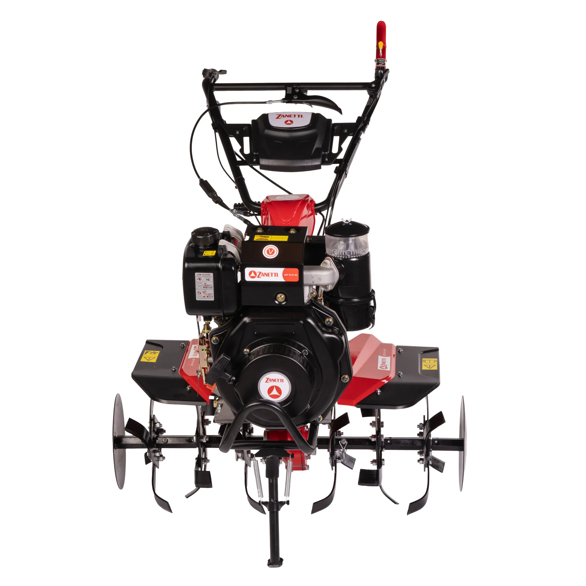 ZDT 70.21 SC è la “Best in Class” nel segmento delle motozappe diesel. Progettata per lavori intensivi, include una frizione multidisco in bagno d’olio e un cambio ad ingranaggi 2+1 per una trasmissione robusta. Dotata di stegole regolabili tramite il sistema ESL (Easy Shift Lever), che consente di fissarle in posizione con una leva al manubrio, garantendo facilità d’uso e adattabilità su vari tipi di terreno.